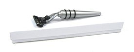 Product Description : Super-Attractive Razor Accepts All MACH 3-Type Blades...Torpedo-Shaped Tapered Brushed-Metal Handle...Three Comfort Grips...Includes Blade